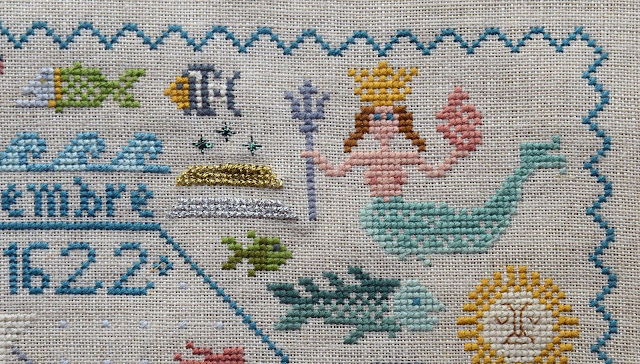 Fantastic finish Mary! Love all the personal choices you made to make it your own, they really enhance it! Love the sails on the ships and that mermaid is so sweet with that crown. Great placemats from your Mom, very pretty!